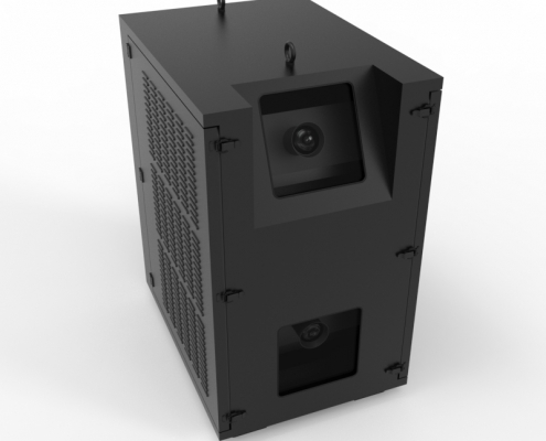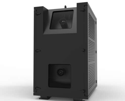 爱普生CB-L1515S NL双机位投影基站采用风冷系统设计,立柱安装,仰角投射,应用于墙体3d mapping。