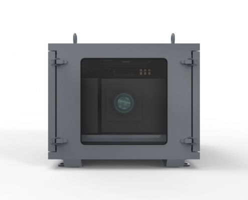 爱普生CB-L20000U单机位投影基站采用风冷设计,立柱安装结构,投影机平放正投,基站本身具有恒温恒湿,防水防尘防虫等功能。