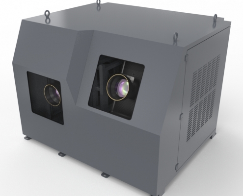 光峰T系列双机侧投基站采用真石漆表面处理工艺,基站采用不锈钢#304材质,双模系统,基站具有恒温恒湿,防水防尘等功能。
