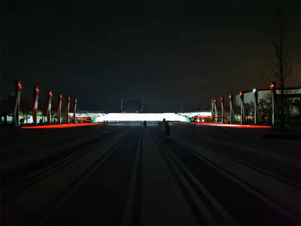 浙江嘉兴项目采用35台Christie DWU2022-HS投影机,单机位和5机位安装机构设计,立柱安装,地面和墙体投影。