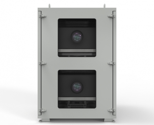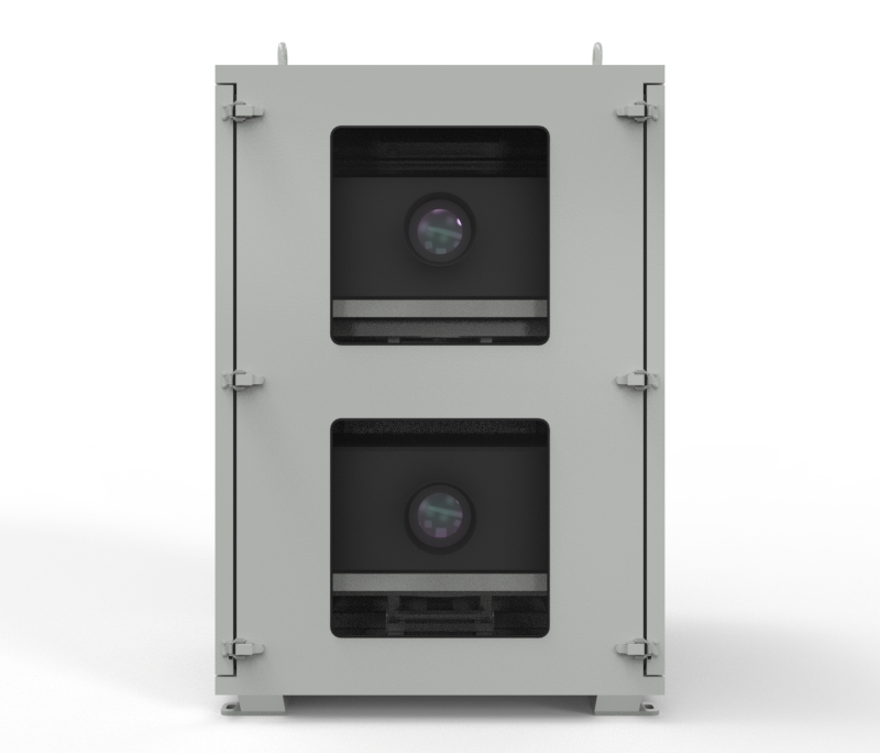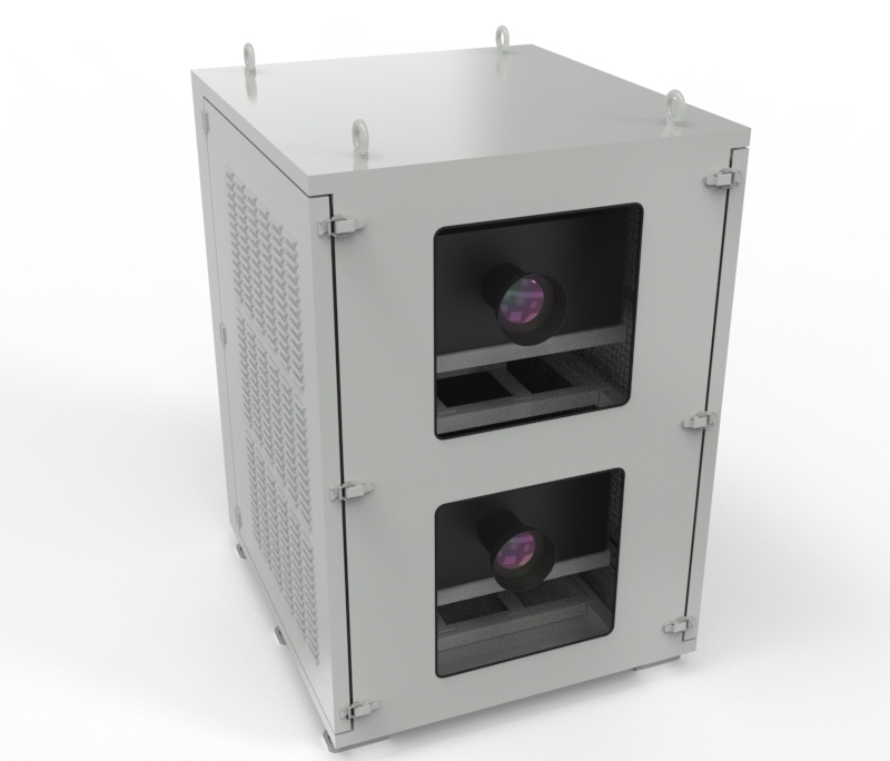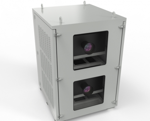 巴可G100系列双机位投影机基站采用风冷设计方案,室外防水防尘防沙设计,基站采用立柱安装方式,投影机内部调节装置,投影机叠加安装方式等。