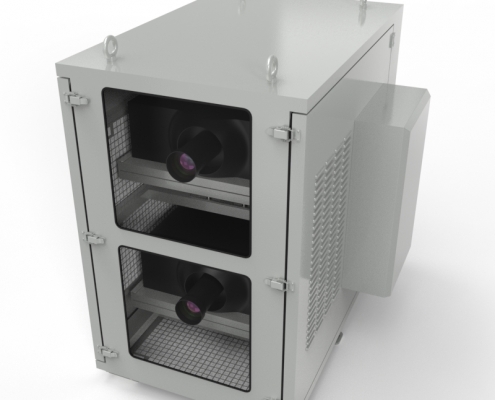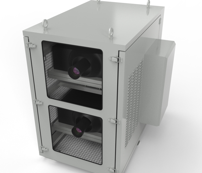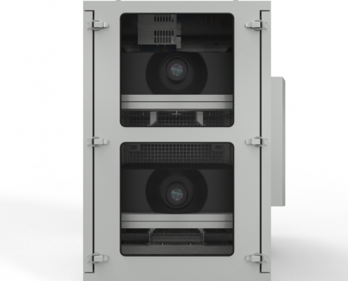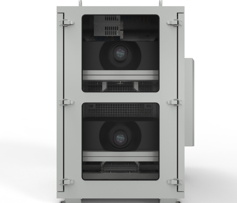 科视H系列双机位投影基站采用双模系统,投影机内部调节结构设计,基站支持立柱、平台、墙体安装,基站具有防水防尘,恒温恒湿的功能。