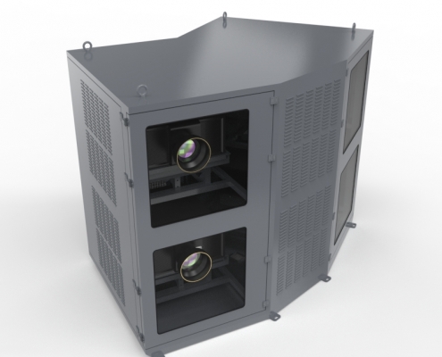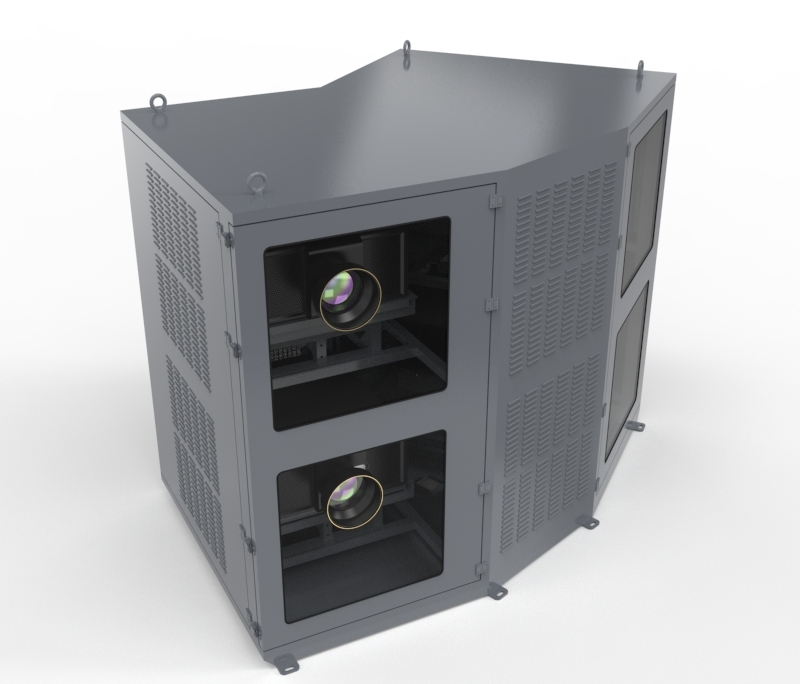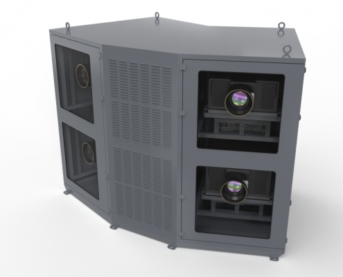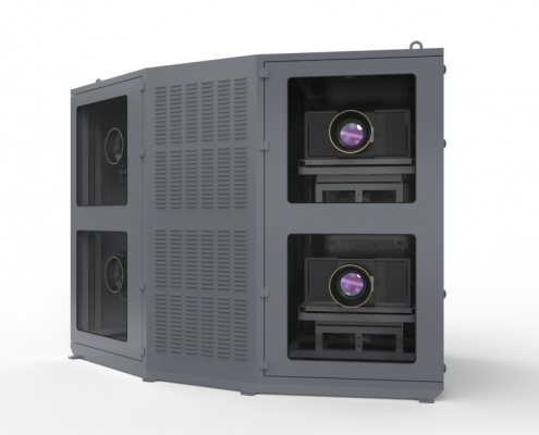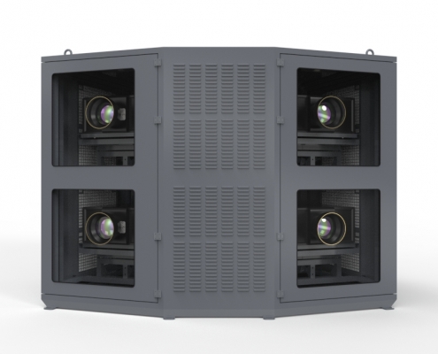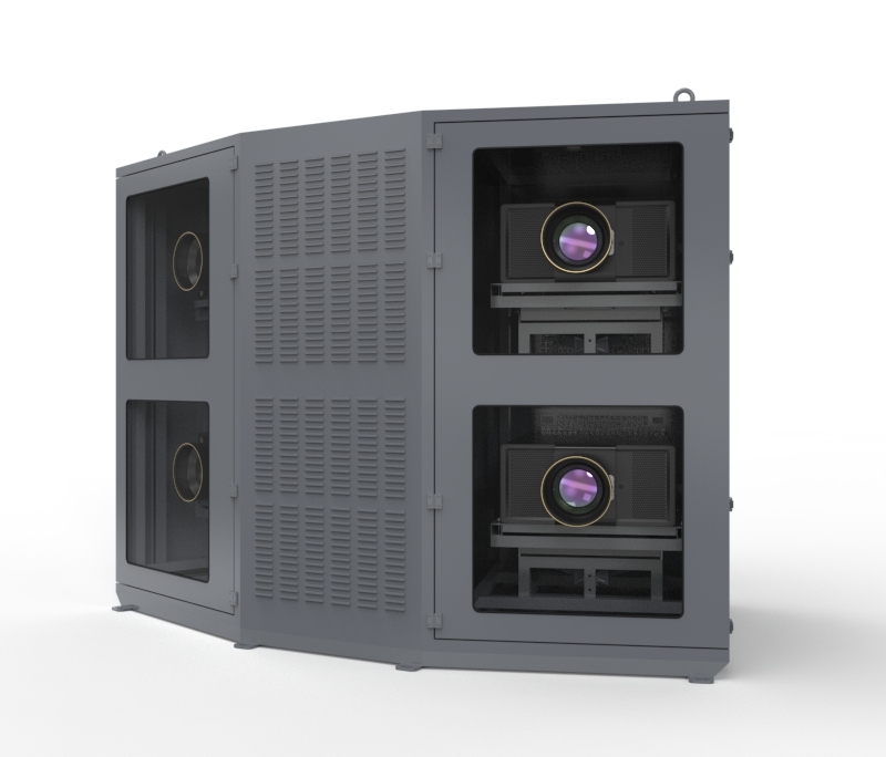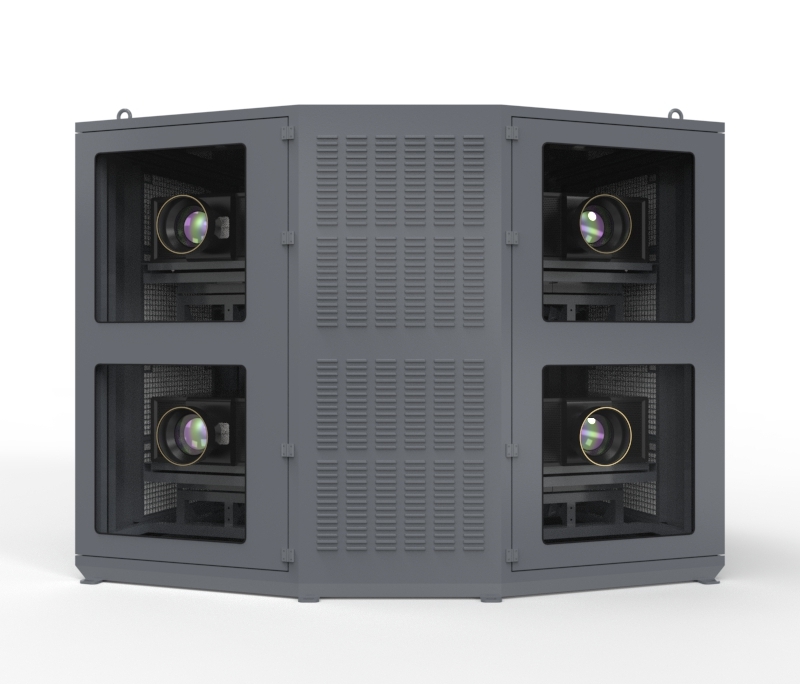 光峰T系列四机位投影基站采用2*2式分布,立柱主体安装,基站采用双模恒温除湿,可在任何环境下工作,可有效保证工程投影机的正常运行状态。