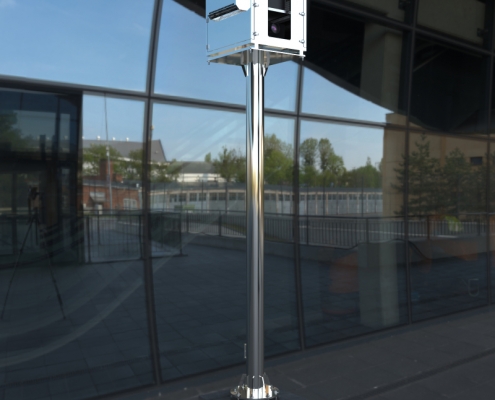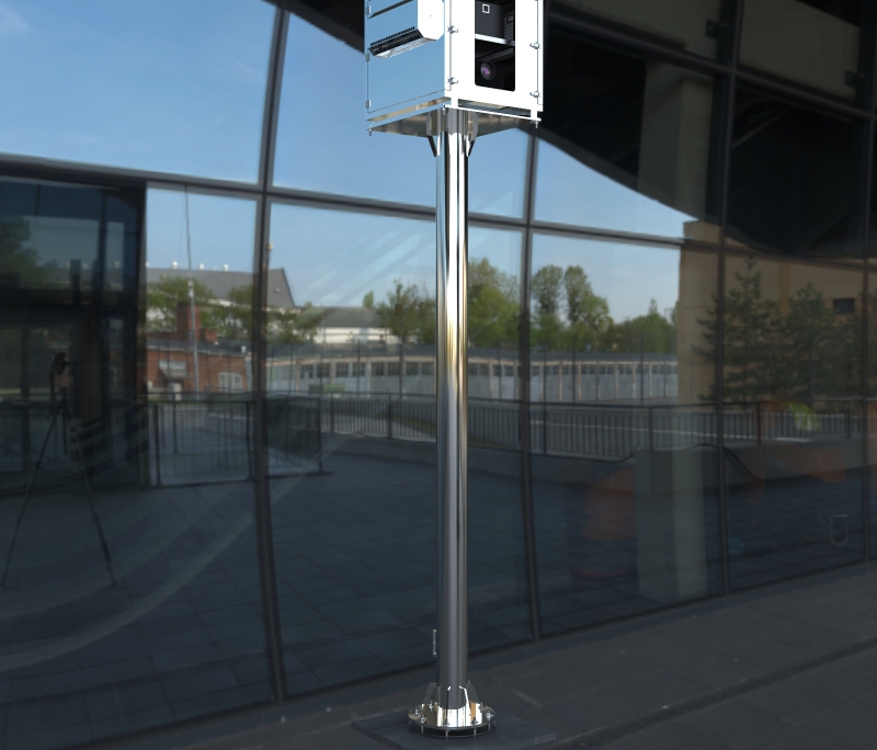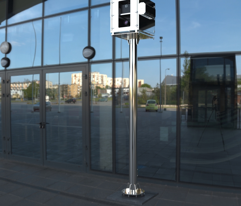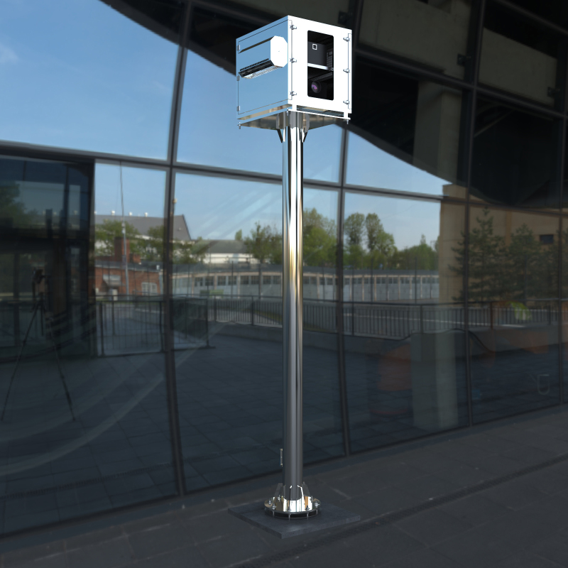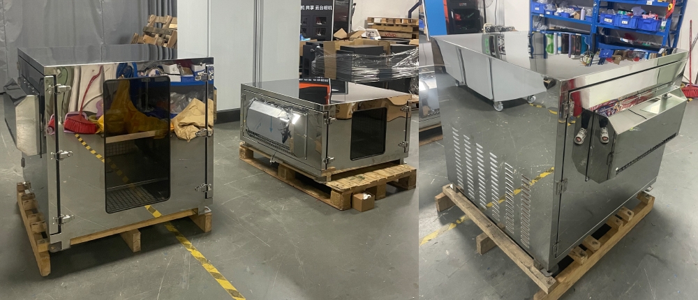 不锈钢镜面表面处理投影机基站,具备恒温恒湿,防尘的功能,安装简单,可有效保护室外工作的投影机。