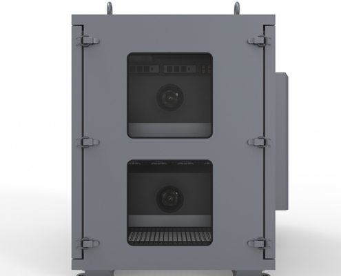 松下SMZ系列双机位基站采用双模系统,立柱安装结构设计,投影机平放正投形式,基站具有防水防尘,恒温恒湿等功能。